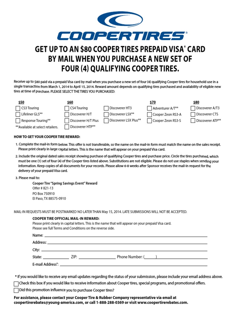 Cooper Tire Rebate Form Mail Rebate (Marketing)